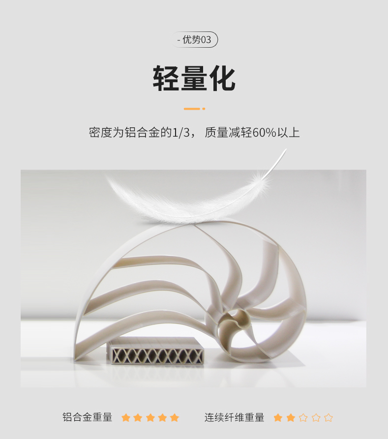 以連續(xù)碳纖維增強(qiáng)熱塑性聚合物基高性能復(fù)合材料零件直接3D打印為目標(biāo),采用連續(xù)纖與然塑任聚合物為原材料,利用復(fù)合浸漬-炫融沉積的3D打印工藝實(shí)現(xiàn)復(fù)合材料制備與雜結(jié)復(fù)合材料零件成形的一體化制造。與現(xiàn)有主要的復(fù)材制造技術(shù),如熱壓罐成型技不。傳送模塑(RTM)成型技術(shù)、纏繞成型技術(shù)、自動鋪放技術(shù)相比,復(fù)合材料3D打印工藝的主要優(yōu)勢在于成本低、周期短,能實(shí)現(xiàn)復(fù)雜結(jié)構(gòu)復(fù)合材料構(gòu)件的快速制造。 High performance continuous fiber reinforced composites can be directly fabricated through 3D printing technology. Different continuous fibers and thermoplastic polymers are used as raw materials and simultaneously fed into printing nozzle of 3D printing process realizing the integrated preparation and forming of composites. Compared with conventional processes, such as vacuum forming, filament winding, pultrusion, bladder-assisted molding, compression process, the developed novel 3D printing process not only have a lower cost and a shorter production cycle but also can fabricate more complex components.